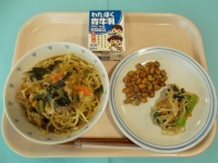 【今日の献立】スタミナ丼じゃこ入りナムルシュワ~ポンチ牛乳今日はお世話になった6...