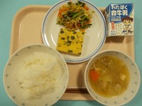 【今日の献立】ご飯豆腐の玉子焼きキャベツのじゃこサラダ豚汁牛乳今日は汁物部門2位...