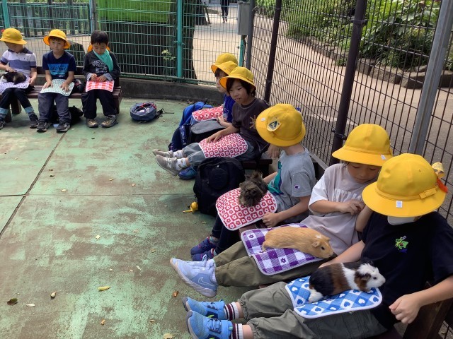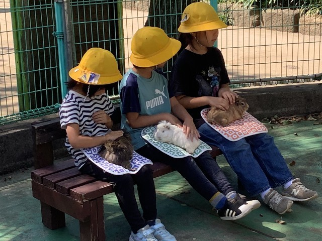 碑文谷公園では、モルモットやウサギなどの小動物と触れ合うこともできました。