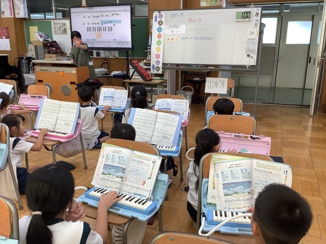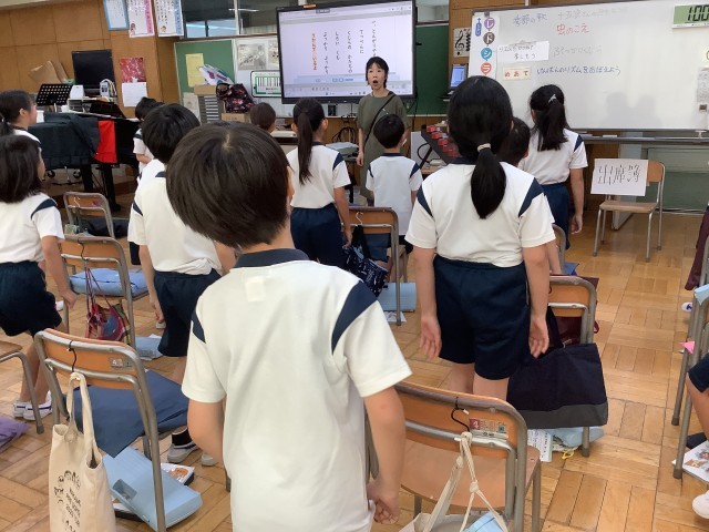 9/29 2年生音楽 公開日 2025/09/29 更新日 2025/09/29 今日のできごと 「十五夜さんのおもちつき」では、ペア同士で手遊びしながらおもちつきの歌を歌いました。手遊びにはもうかなり慣れていて、たくさんの笑顔が見られました。