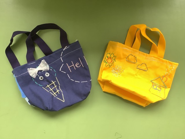 出来上がった「マイバッグ」です。形は何を入れるかによって、それぞれ異なります。