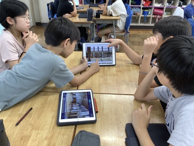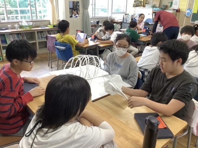 3・4年生、5・6年生が混合のグループの中で、自分の取り組んでいる内容を発表し、感想やアドバイスをもらいました。