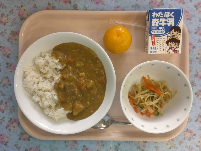 今日は千葉県のシルクスイートという品種のさつまいもをたくさん入れ、甘味のあるカレーになりました。さつまいもが大好きな児童より「さつまいもをもっと給食に入れてほしい!」という願いがあり、今月のカレーはさつまいもを使いました。今日はいつもに増して嬉しそうに過ごしていて、「美味しい!」と感想を教えてくれました。どの学級もよく食べていました。