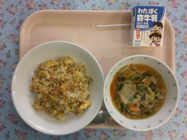 ワンタンスープには、肉をつつんでいないワンタンをそのまま使っています。つるっとした食感が美味しく、たっぷりの野菜とれる人気のスープです。「今日の献立最高!」「美味しくて、いつもより早く食べ終わっておかわりしました。」と嬉しい感想がありました。