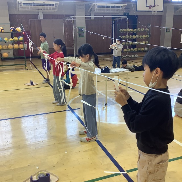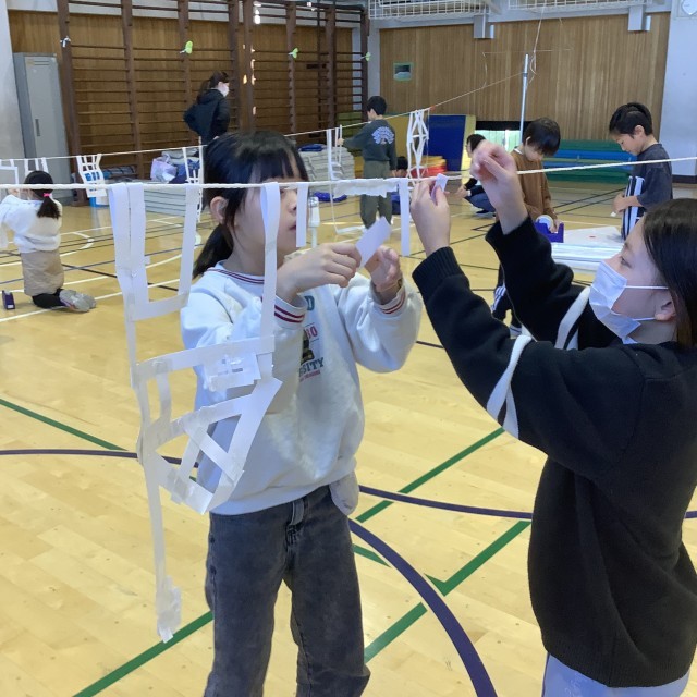細く切られた紙を自由につかって、ロープにつけていきます。