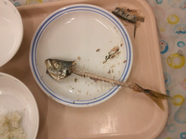 5年生で実施した魚の出前授業では、一般社団法人豊洲市場協会より鯵71尾をご提供いただき5年生の給食で使用しました。千葉県銚子で水揚げされた新鮮な鯵が給食室に届きました。内臓とぜいごは納品業者さんが取り除いてくださっています。講師の先生のお話を集中して聞き、脊椎の部分を鶏外すまで挑戦できました。初めて尾頭付きの魚を食べたよ!という子も骨と身を分けて綺麗に食べていました。