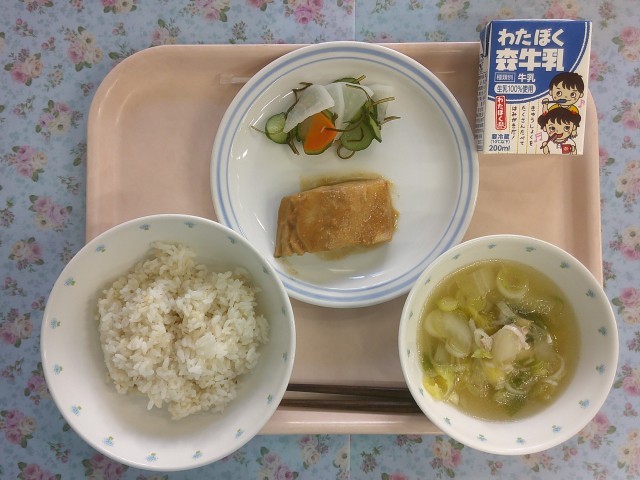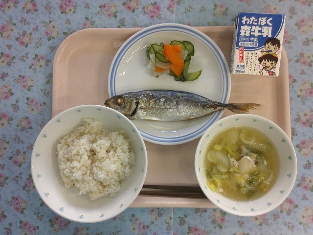 福岡県の郷土料理です。ぬかみそ(ぬか床)を使って炊いた「ぬかみそ炊き」、南蛮貿易時代に伝わった外国風の漬物の「あちゃら漬け」、鶏の旨味がつまった「水炊き」を給食に取り入れました。5年生は魚の出前授業で魚の骨について学んだことを活かすために、鯵の塩焼きを提供しています。