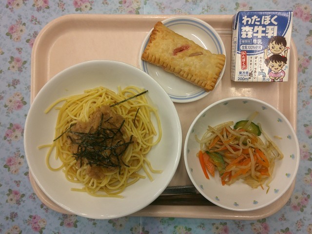 練馬スパゲティは、練馬区の学校給食で人気の献立です。大根おろしとツナを、酢・しょうゆ・砂糖・塩・しょうゆで味付けして、スパゲティにかけていただきます。大根の辛みや臭みがなく、美味しく仕上がりました。「美味しかったのでまた出してほしいです。」「レシピを教えてほしいです。」と大人気でした。