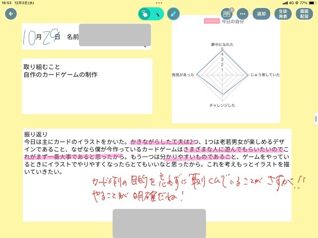 12/3 はかせタイムの計画とふりかえり② 公開日 2025/12/03 更新日 2025/12/03 校内研究 子どもたちのふりかえりシートを紹介します。活動が終わるごとに記入をし、自己評価をしてもらっています。友達からのアドバイスや支援が活動のエネルギーになっているようです。