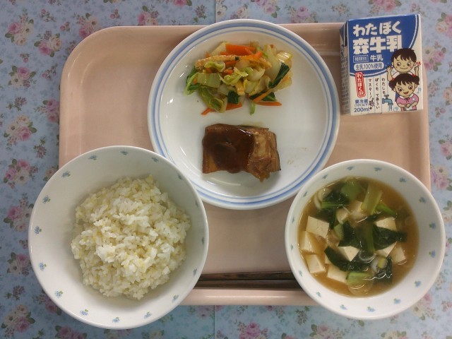 さばの煮つけは、スチームコンベクションオーブンで作成して調理しています。ふっくらと美味しく仕上がりました。大きな骨は魚屋さんが取り除いてくださっていますが、小骨は児童が取り外し食べます。2年1組の教室では「さばが美味しいです!」と人気でした。