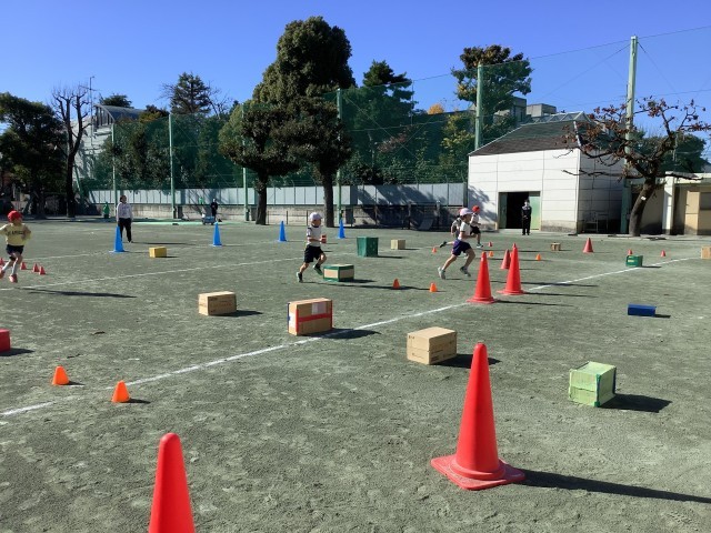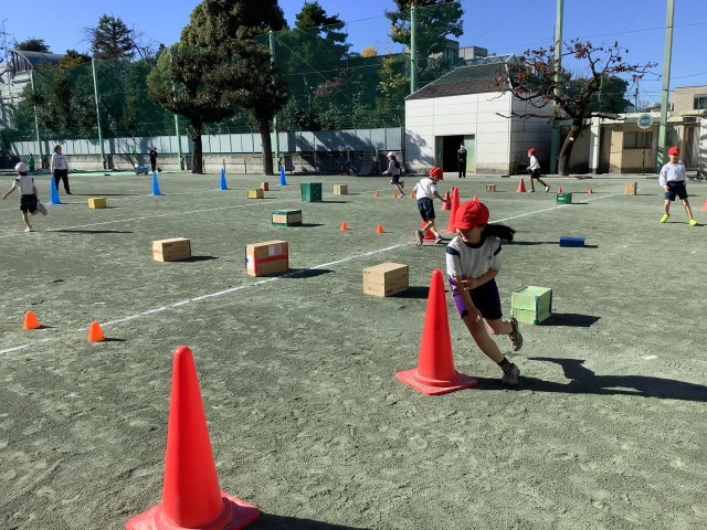 12/4 2年生体育 公開日 2025/12/05 更新日 2025/12/05 今日のできごと ジグザグに動いたり、飛び越えたりといろいろな運動をしながらチームで速さを競いました。だいぶ寒くなってきましたが、全力で頑張ったので汗がうっすらと額ににじんでいました。