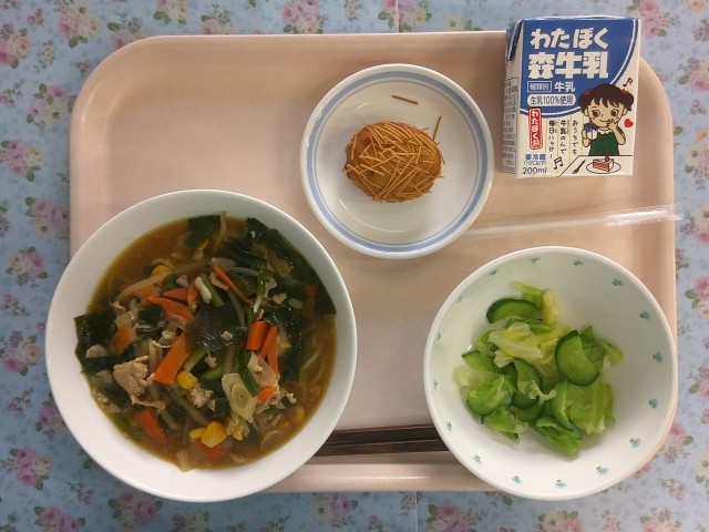 さつま芋のいがぐり揚げは、蒸した有機さつまいもを潰して薄力粉を混ぜて丸め、折ったそうめんを付けて揚げました。薄力粉が入ったのでもっちりとした仕上がりになりました。6年1組の教室では「とっても美味しいです!」「もっと食べたかった。」と大人気でした。