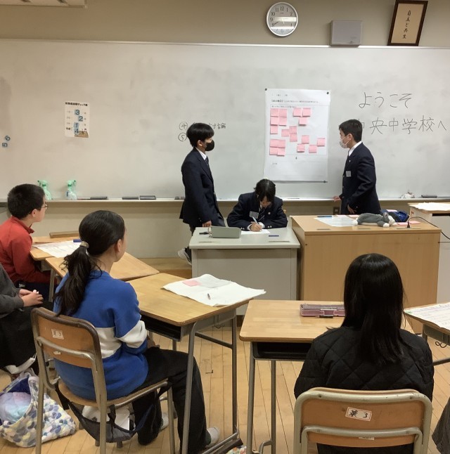 12/18 小中連携 公開日 2025/12/19 更新日 2025/12/19 今日のできごと 18日木曜日に小中連携の一環として、目黒中央中学校で「いじめ問題を考えるめぐろ子ども会議」が行われました。この会議は、中目黒小、五本木小、鷹番小、上目黒小の5年生と中央中の1年生がいじめのない学校を目指して話し合いを行うものです。初対面のグループの中でしたが、子どもたちは事前に準備した内容をしっかりと発表できていました。