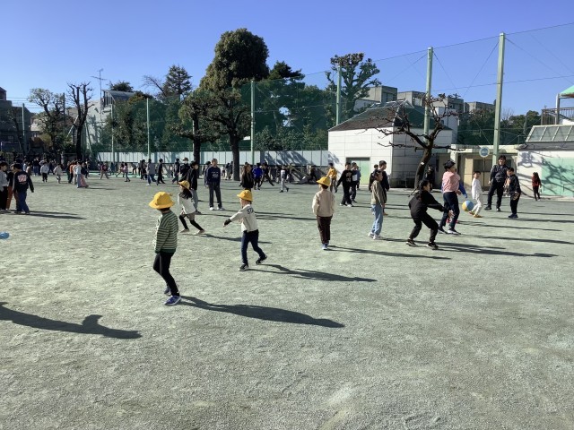 子ども達は、中休みに太陽が照らす暖かい校庭で元気に遊んでいました。