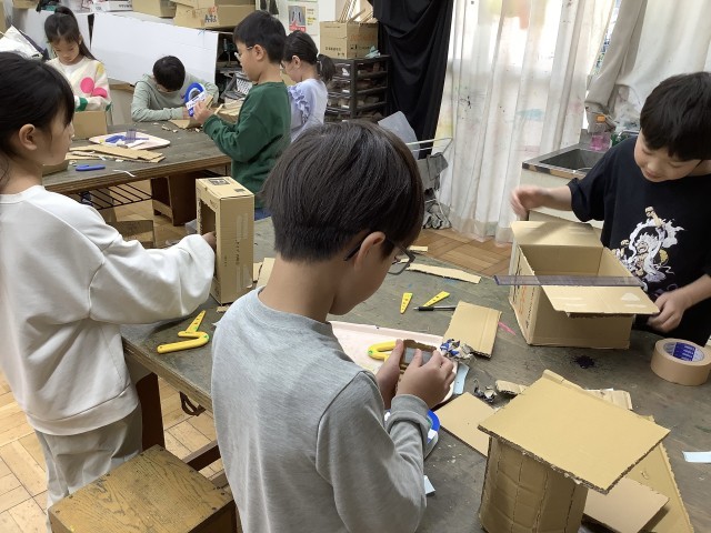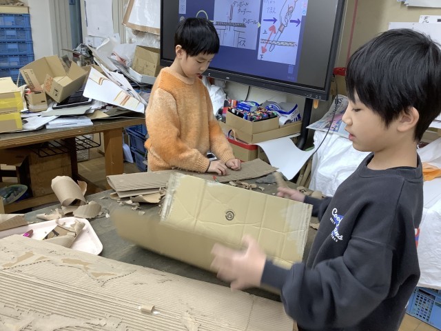1/13 3年生図工 公開日 2026/01/13 更新日 2026/01/13 今日のできごと 今日の図工の材料はダンボールです。硬いので子どもたちには扱いにくそうな気もしますが、曲げたり、裂いたり、筋目を付けて折ってみたりと様々な工夫をしながら作品づくりに取り組んでいました。