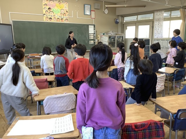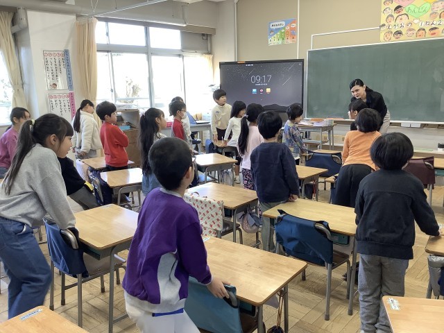 1/14 1年生外国語活動 公開日 2026/01/14 更新日 2026/01/14 今日のできごと 新しい年になってから初めての外国語活動の時間です。「久しぶりですね。元気でしたか?」の質問に「元気です!」と元気に答えていました。