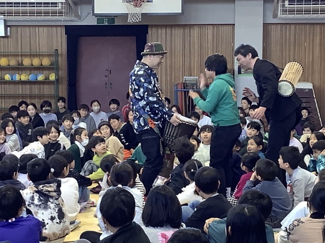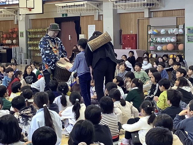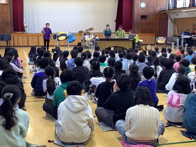 東京都の事業、「笑顔と学びの体験活動プロジェクト」として、東京パノラマパーカッションさんをお招きし、打楽器の演奏を楽しみました。