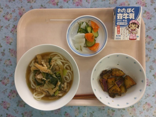 6年生のリクエスト献立 麺部門では1位がみそラーメン、3位がきつねうどんでした。それに合わせて「うどん対ラーメン」(作 田中六大 出版社 講談社)の絵本を紹介しました。うどんとラーメンのどちらがおいしいのか決める熾烈な戦いが描かれています。一体どちらが勝つのでしょうか。18日には「みそラーメン」を提供します。4年1組の教室では「うどんとラーメンどっちかしか食べられないんだったら、ラーメンを選ぶ。」「ぼくも。でも、病気の時にもラーメンしか食べられなかったらお腹が痛くなりそう。」「夏は熱いラーメンは嫌かな。」「冷やしラーメンにすればいいのかな。」と話をしてとても盛り上がっていました。