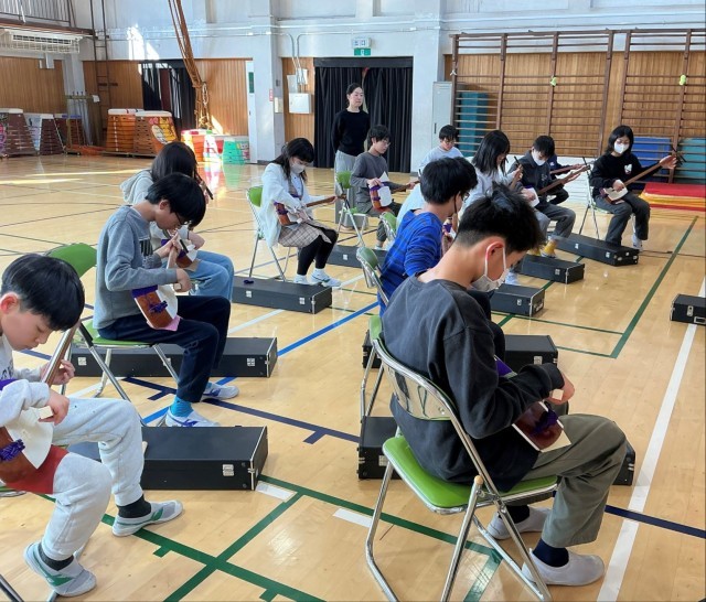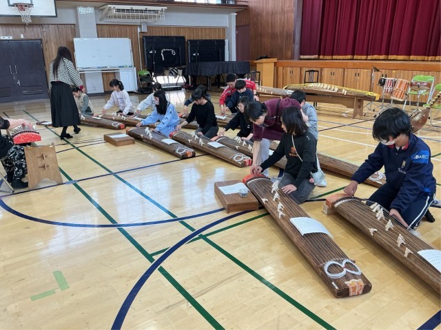 2/12 6年生和楽器体験教室 公開日 2026/02/12 更新日 2026/02/12 今日のできごと 三味線、筝、鼓、尺八の4種類の和楽器を体験しました。初めて演奏する楽器でしたが、講師の先生のアドバイスをしっかりと聞き、だんだんと音が出るようになってきました。