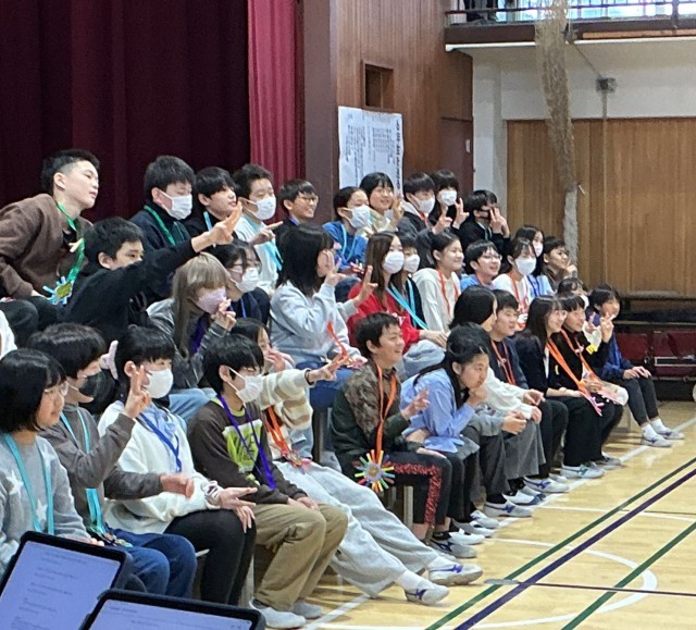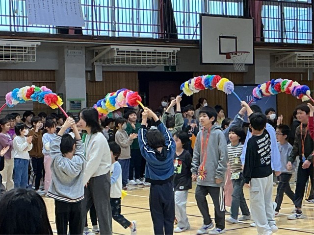 2/25 6年生を送る会① 公開日 2026/02/25 更新日 2026/02/25 今日のできごと 「6年生を送る会」が行われました。全校で卒業する6年生へ歌やダンス、メッセージなどを披露し、感謝の気持ちを伝えました。6年生もとても楽しんでくれたようです。