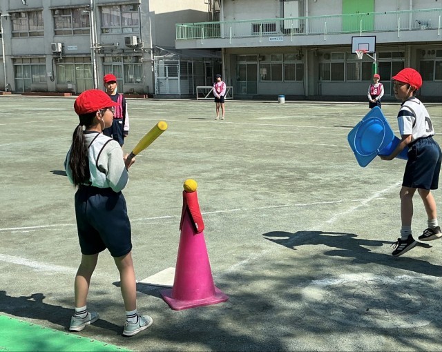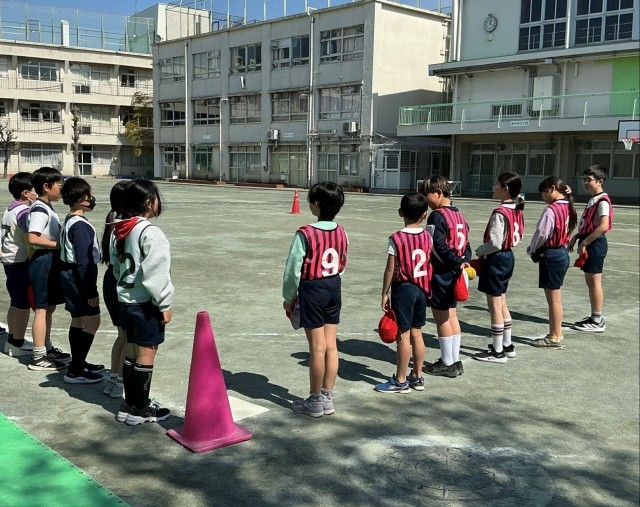 3/9 4年生体育① 公開日 2026/03/09 更新日 2026/03/09 今日のできごと 4年生の体育では、「ベースボール型ゲーム」に取り組んでいます。攻めと守りに分かれ、対戦します。「気を付け!よろしくお願いします!」という最初の挨拶から元気よくゲームがスタートしました。