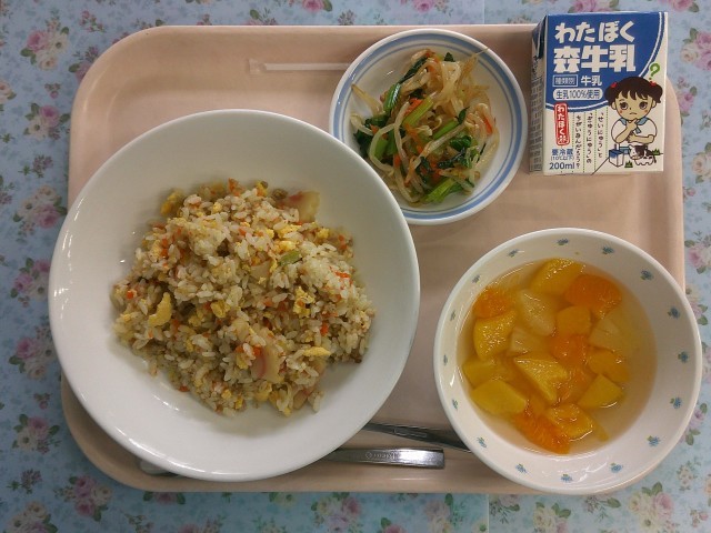 3月4日から10日まで給食委員会の5・6年生が考えた献立を提供します。みんなが苦手な食材(ピーマン・さば・牛乳・ししゃも・きのこ)を美味しく食べて残菜が減るような献立を考えました。今日はきのこがテーマです。きのこをおいしく食べられるチャーハンをメインにみんなが大好きなメニューを合わせました。