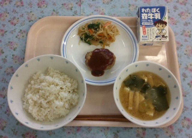 【4月8日(水)の給食】 公開日 2026/04/13 更新日 2026/04/09 今日の給食 【4月8日(水)の給食】 麦ごはん 豆腐ハンバーグ 切干大根の華風和え みそ汁 牛乳 今日から2年生から6年生の給食が始まりました。どの学年もよく食べていました。