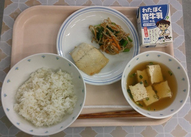 【4月10日(金)の給食】 公開日 2026/04/13 更新日 2026/04/10 今日の給食 【4月10日(金)の給食】 麦ごはん さばのみそ焼き おかか和え すまし汁 牛乳 おかか和えには薄削りではなく粉のかつお節を入れています。うまみがあるので薄味でも美味しく仕上がります。どの学年もよく食べていました。