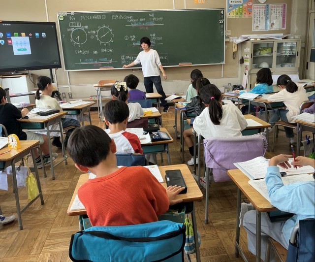 繰り上がり、繰り下がりのある時間の計算の仕方を学習しました。