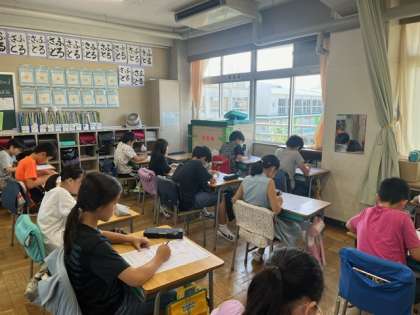 9/6 5年生算数のテスト 公開日 2024/09/06 更新日 2024/09/06 今日のできごと 一時間目から算数のテストにテンションが下がっています。図形の角について、落ち着いて取り組んでいました。