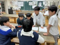 今日の4,5時間目にオーケストラアジアジャパンのメンバーをお招きして、和楽器体験ワークショップが行われました。和楽器の紹介や演奏を聴いた後、実際に4つの和楽器(箏、三味線、尺八、鼓)の演奏に挑戦しました。