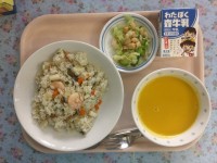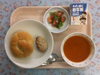 ブラウニーは6年生からのリクエストです。本校ではナッツやチョコレートを使わないさっぱりとしたブラウニーの配合にしています。粉砂糖をかけて味わいました。6年生が「とっても美味しいです。」と喜んでいました。