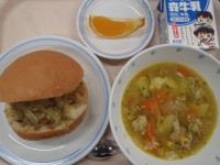 ・フィッシュバーガー ・豚肉とカリフラワーのカレースープ ・果物(デコポン) ・...