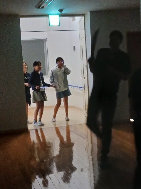 あちこちに、お化けが出現!「怖くてもう、無理!」と言いながらも、悲鳴を上げて学園内を回っていました。怖くて2チーム合同で回っているところもありました。
