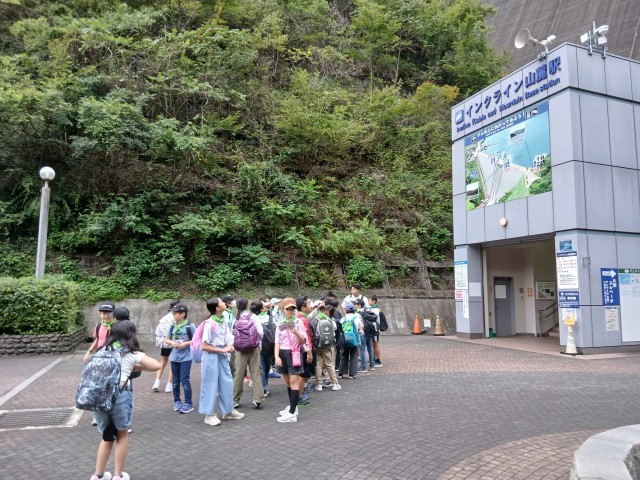 ダムまでの道は坂道。ふー、ふー、言いながら、ダムに着くと、インクライン乗り場を背に写真撮影。