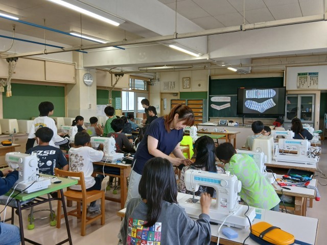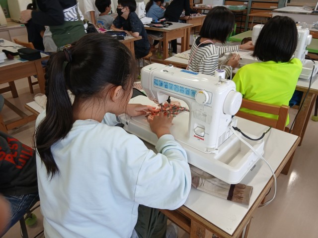 5年生は靴下をミシンで縫い、作品を作っています。何ができるか、、、はお楽しみに!!