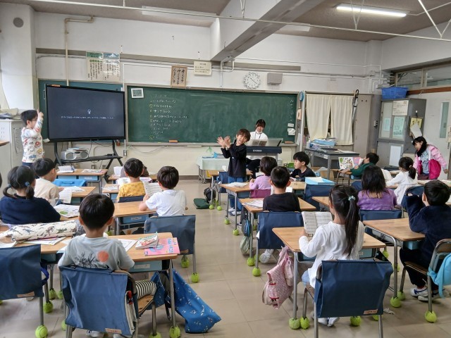 1年生の音楽は担任が1時間、専科教員(講師)が1時間、教えています。