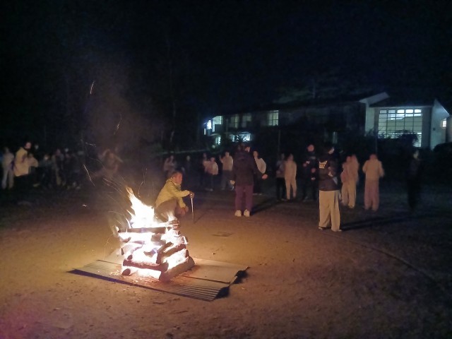 外は冷えるので暖かい服装で参加しました。ジンギスカン、マイムマイムなどキャンプファイヤー定番のダンスを踊ったり、ゲームで盛り上がりました。