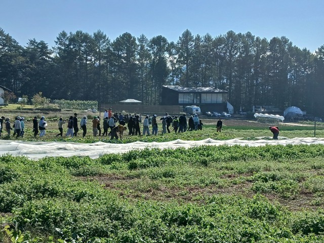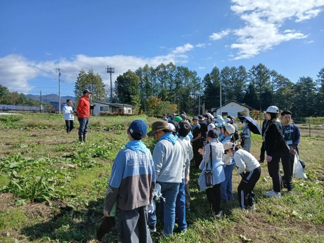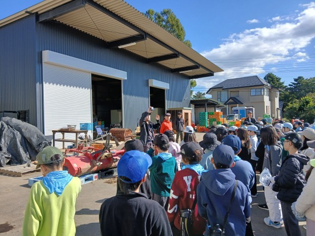 ここでは、農業体験をしたり、農業についての話を聞いたりしました。2クラスずつに分かれて体験をしました。