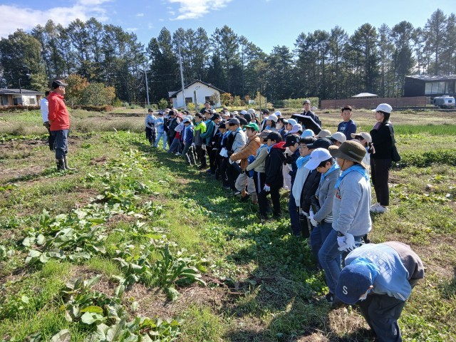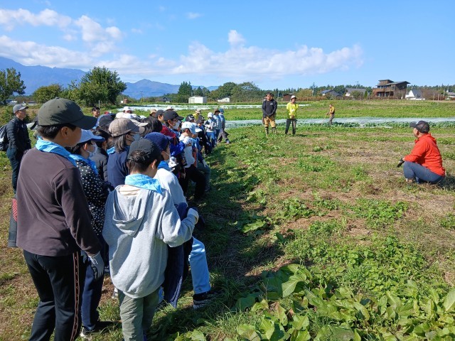 今回、収穫体験できるのはじゃがいもです。品種はメークイン。煮物などに適しているよ、と係の方から話がありました。