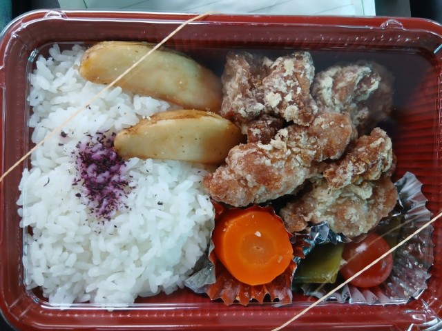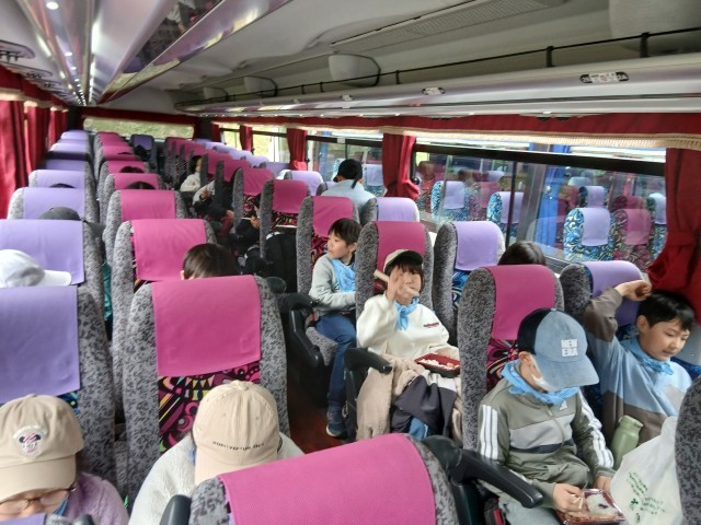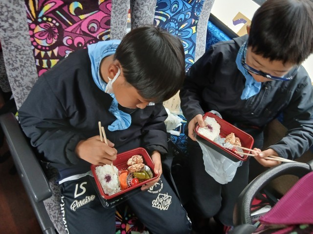 残念ながら、雨が降ってきたため、お弁当はバスの中で食べました。