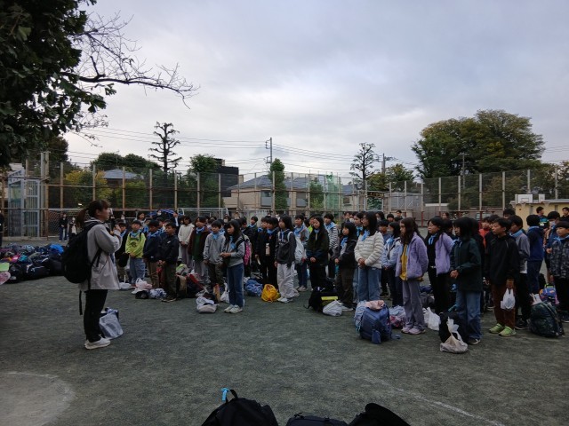 予定通り、学校に戻り、校庭で帰校式を行いました。