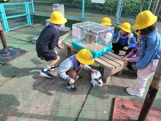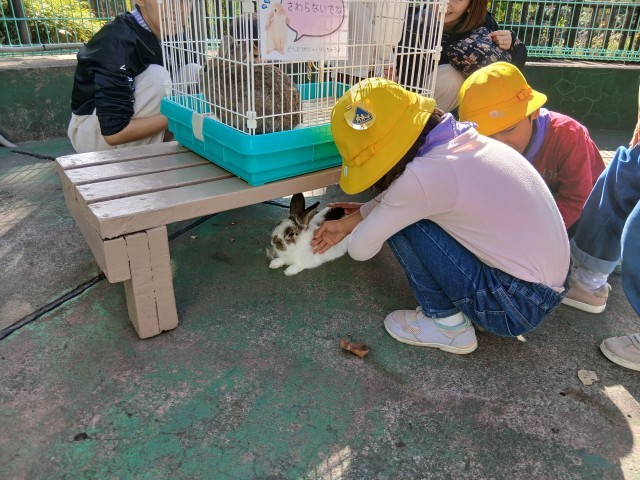 こちらは、かめさん、うさぎさんのコーナーです。白いうさぎさんの名前はヨーグルトちゃん。