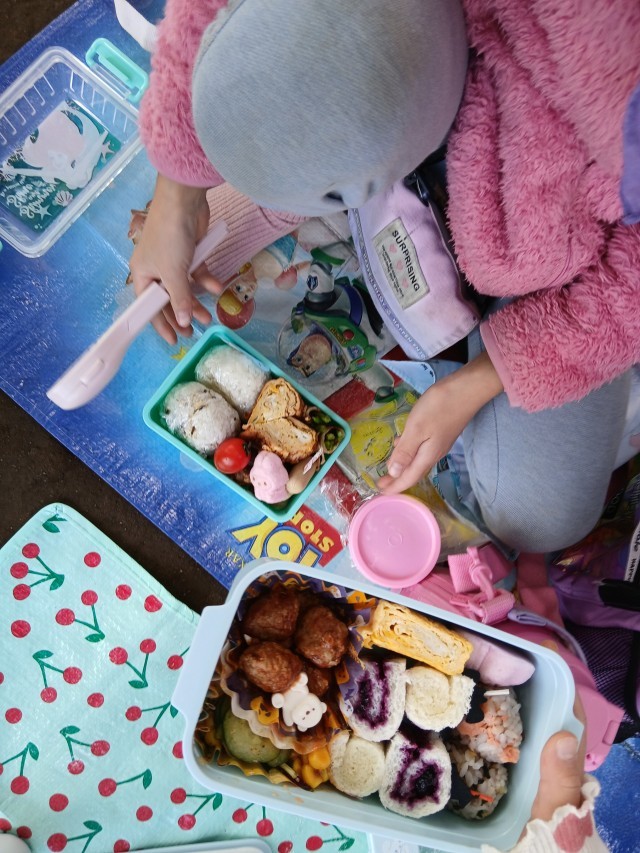 みんなのお弁当がおいしそうで、子どもたちも大はしゃぎでした。