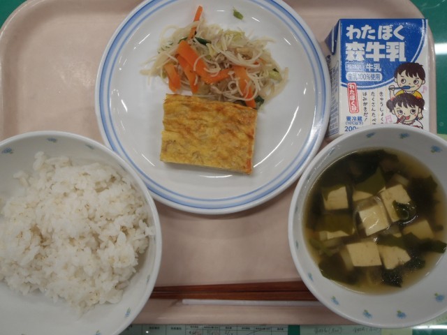 ・ごはん ・台湾風卵焼き ・焼きビーフン わかめと豆腐のスープ ・牛乳