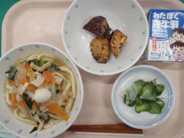 ・ちゃんぽんうどん ・野菜のこんぶ和え ・大学いも ・牛乳