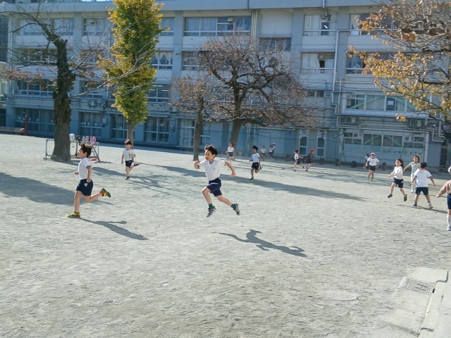 朝夕は寒いですが、昼間はあたたかく、子どもたちは元気に校庭で走り回っています。お天気がよいと、ポカポカ気持ちがよいです。