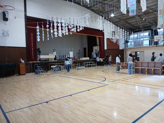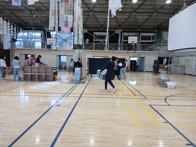 6年生は、展覧会の会場準備を手伝いました。机やパネルを運び、各学年ごとのブースをつくりました。この後、子どもたちの作品を並べていきます。