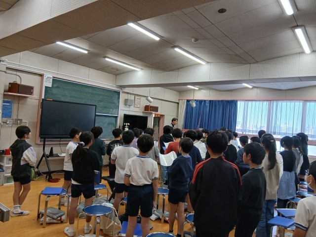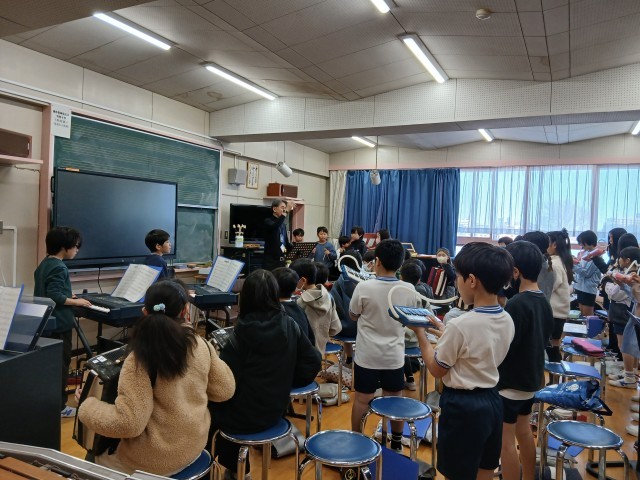 5年生は1月に行われる連合音楽会に向けて練習をしています。この時間は二クラス合同での練習でした。