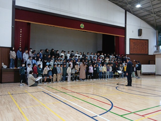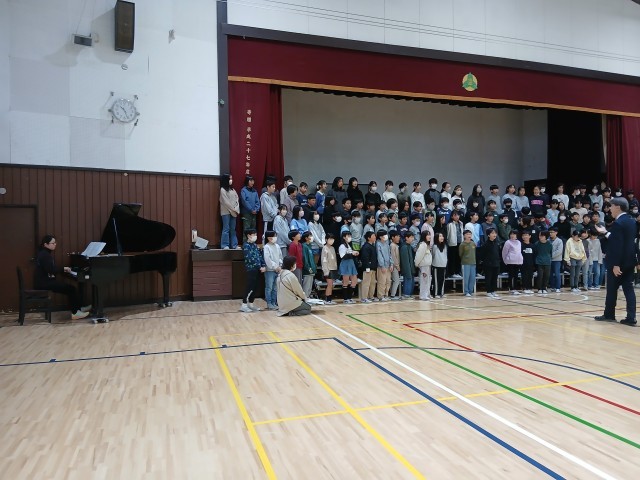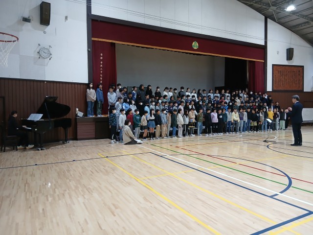 1月の連合音楽会に向けて、学年合同での練習が始まりました。はじめは声がなかなか出なかったのですが、練習を繰り返す中、それぞれのパートの歌声を聞きながら、歌えるようになってきています。